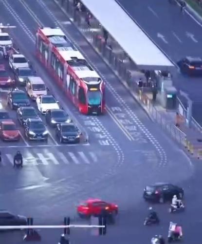 В Китае запущен в эксплуатацию ART — автономный скоростной транспорт (Autonomous Rail Rapid Transit), который выглядит как трамвай, но при этом не нуждается ни в рельсах, ни в контактных проводах.