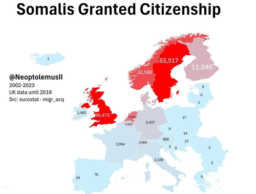 Десятимиллионная Швеция впустила 63.517 незаменимых специалиста из Сомали. Польша с населением в 37.5 млн пустила лишь 17 сомалийцев.