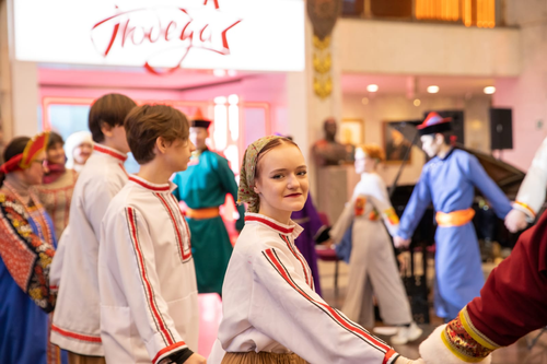 А самым ярким событием праздника стал флешмоб национальных костюмов народов России. Более 100 артистов из различных творческих коллективов выстроились в большой хоровод. Поддержали флешмоб и посетители музея, пришедшие в тематических нарядах.