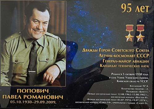 5 октября этого года исполнилось 95 лет со дня рождения лётчика-космонавта СССР № 4, дважды Героя Советского Союза, генерала авиации Павла Романовича Поповича. Накануне этой даты 4 октября в Звёздном городке состоялся торжественный вечер, на котором присутствовали дочери космонавта, его коллеги по работе, руководство городка, местные жители.