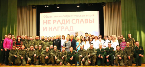 Со словами напутствия к курсантам обратилась руководитель проекта «Не ради славы и наград» Журавлева А.И. «Дорогие друзья! Вы – будущие офицеры России, будущая элита нашей страны, наш золотой фонд. Офицеры вынесли все тяготы и победы русского оружия на своих плечах. Это вы — будущие военачальники и генералы — поведете Россию к новым победам. И мы надеемся, что благодаря Вам Россия будет жить вечно, и будет великим государством!».