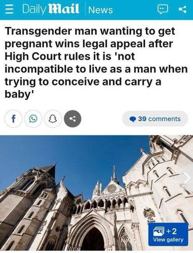 Мужчина-трансгендер*, желающий забеременеть, выиграл судебную апелляцию после того, как Высокий суд постановил, что «жить как мужчина, пытаясь зачать и выносить ребенка, не является несовместимым».