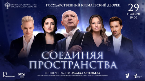 29 ноября 2025 года в Государственном Кремлевском Дворце состоится памятный концерт «Соединяя пространства», посвященный выдающемуся советскому и российскому композитору Эдуарду Артемьеву — одному из самых влиятельных и признанных деятелей отечественной музыкальной культуры. Мероприятие проводится при поддержке Министерства культуры Российской Федерации и РОСКОНЦЕРТА.