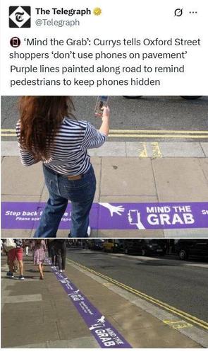 В Лондоне на улицах появилась разметка предупреждающая о ворах «Mind the GRAB» (Берегись, чтоб не украли).