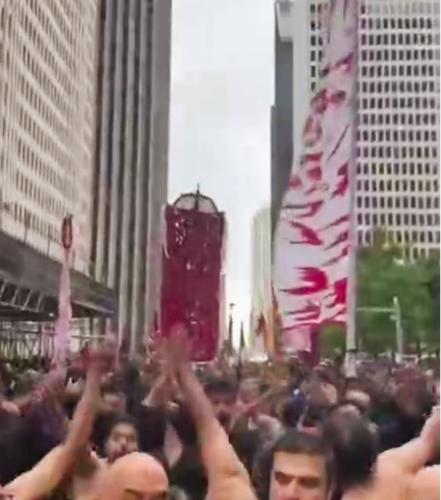 Шествие началось с флагами, на которых было написано: «Нет бога, кроме Аллаха, смерть неверным, шахада — заклинание для принятия ислама».